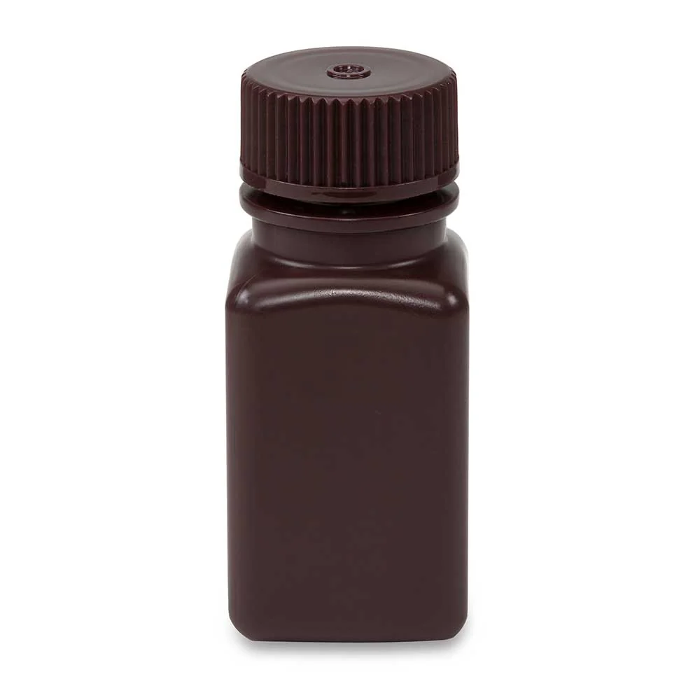 GLOBE SCIENTIFIC Diamond RealSeal Square HDPE Bottles, Amber, Wide Mouth