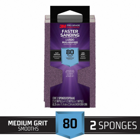 3M 24000PGP-M-2 Sanding Sponge, 2 1/2 Inch X 4 1/2 X 1 Inch Size, Aluminum Oxide, Medium, 80 Grit