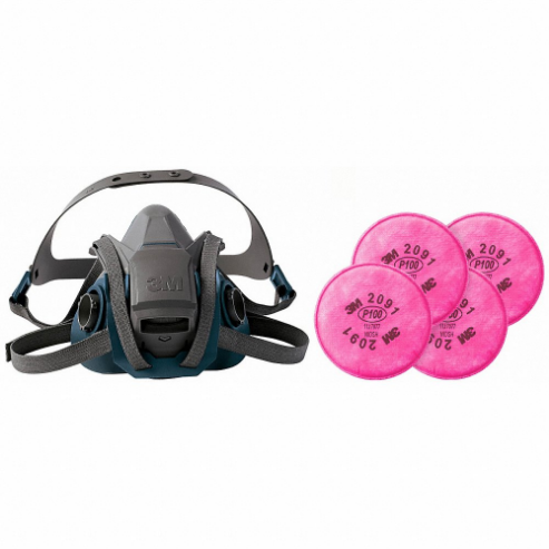 3M 29WT68-4JG27 Half Mask Respirator Kit, 4 Cartridges Included, P100 Filter, Silicone, S Mask Size