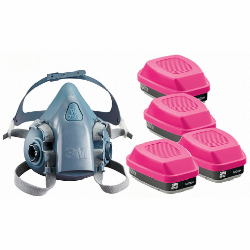 3M 3PB40-4JG10 Half Mask Respirator Kit, 4 Cartridges Included, Silicone, M Mask Size