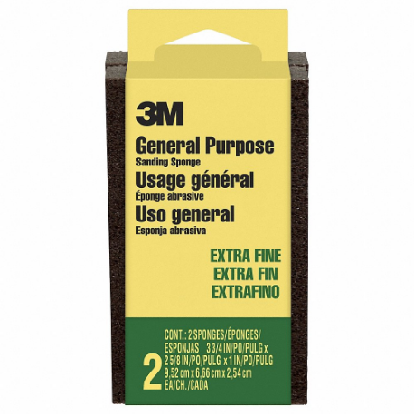 3M CP-000-2P Sanding Sponge, 2 5/8 X 3 3/4 X 1 Inch Size, Aluminum Oxide, Extra Fine