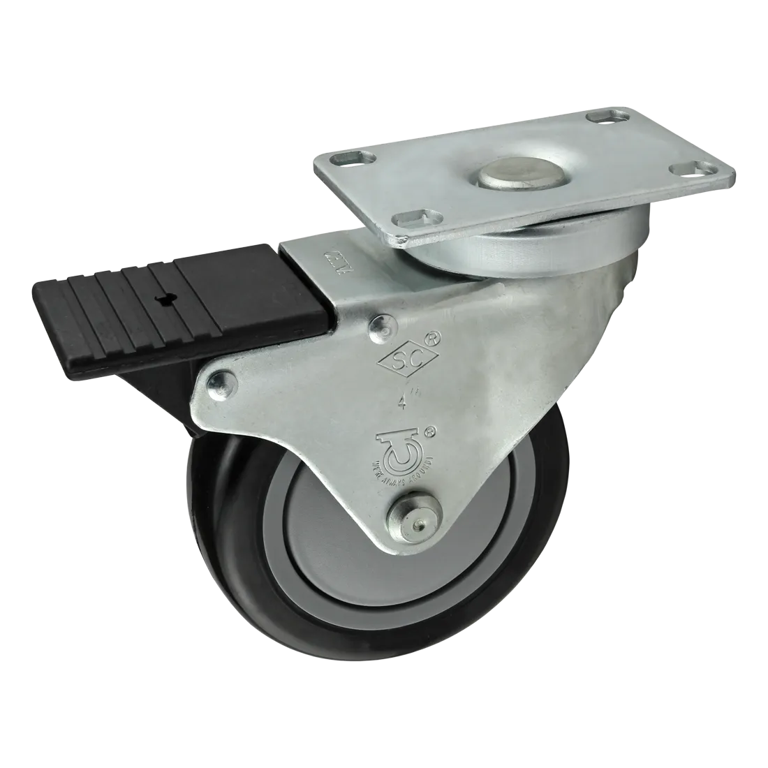 80/20 2333 Swivel Caster, Fractional, 4 Inch Caster, Steel, Black/Gray