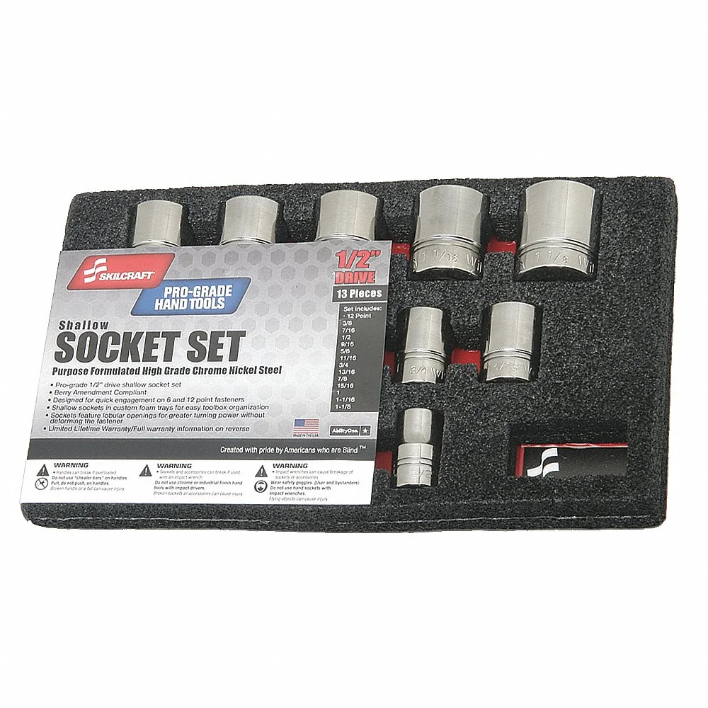 ABILITY ONE 5120-01-429-3546 Socket Set, 1/2 Inch Drive Size, 13 Pieces, 3/8 Inch To 1 1/8 Inch Socket Range