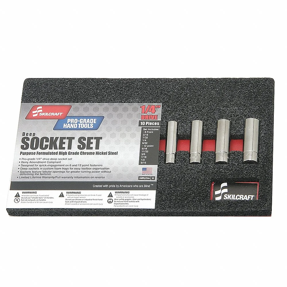 ABILITY ONE 5120-01-429-3625 Socket Set, 1/4 Inch Drive Size, 10 Pieces, 3/16 Inch To 9/16 Inch Socket Range