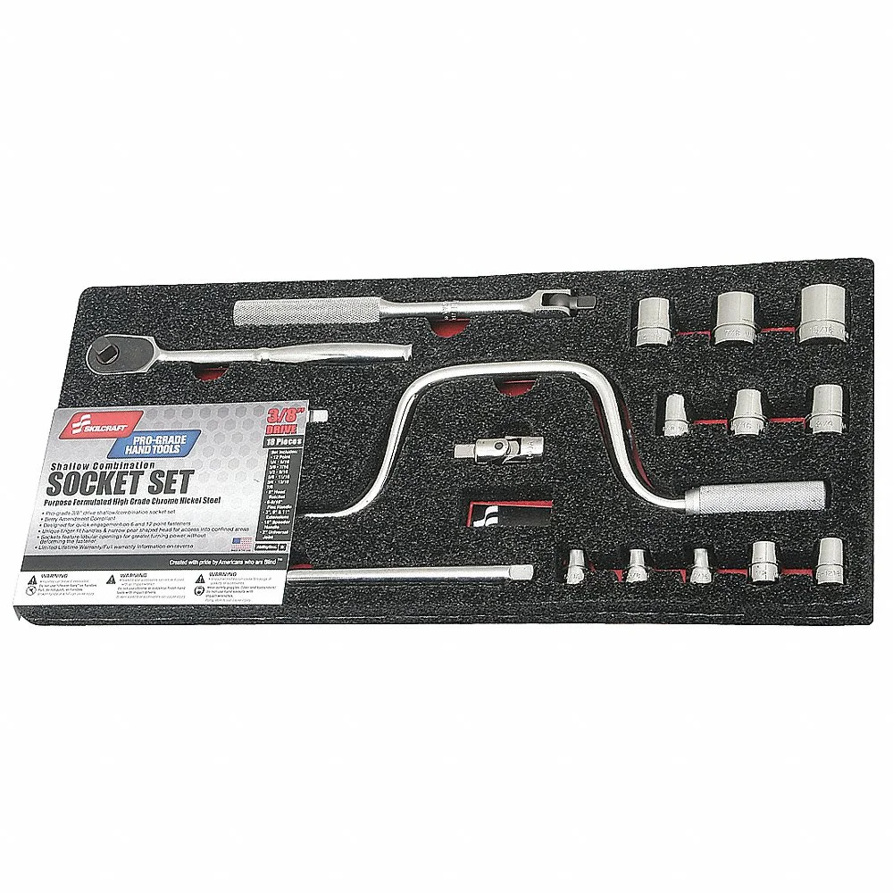 ABILITY ONE 5120-01-429-3645 Socket Wrench Set, 3/8 Inch Drive Size, 18 Pieces, 1/4 Inch To 7/8 Inch Socket Range