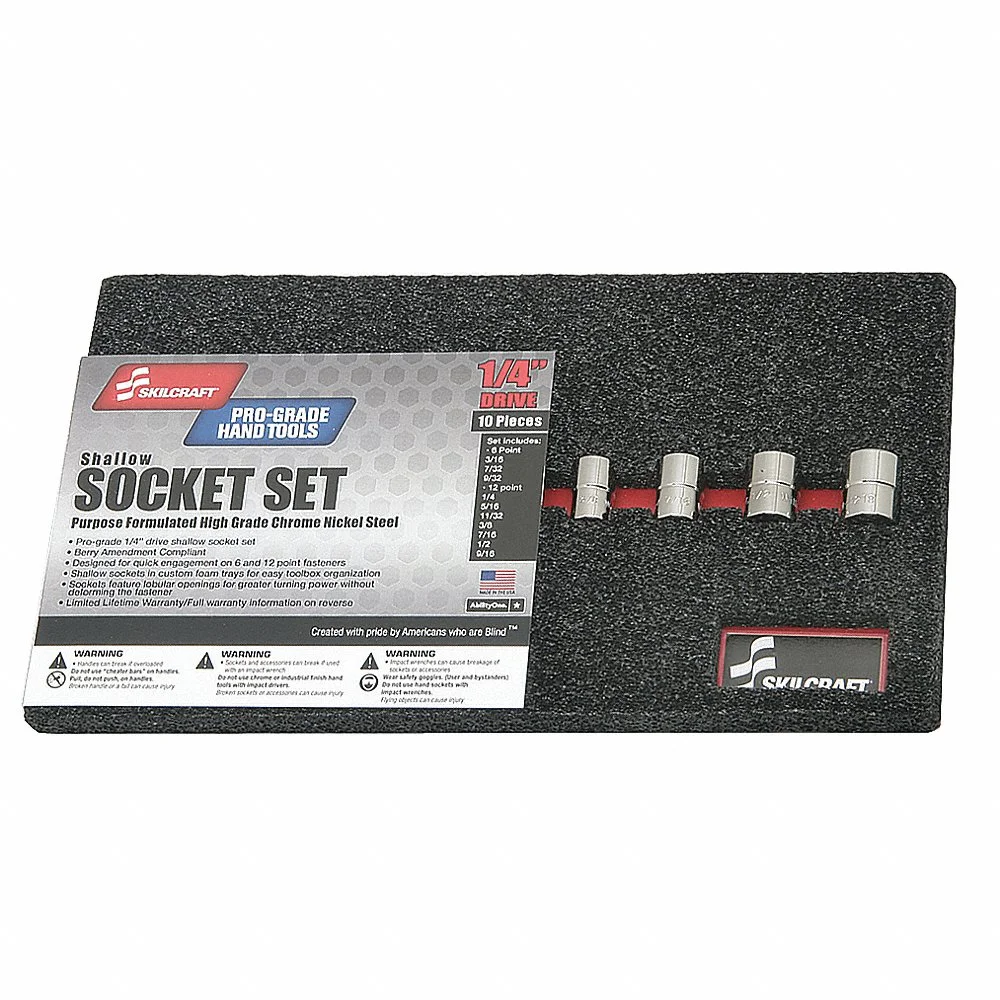 ABILITY ONE 5120-01-631-1433 Socket Set, 1/4 Inch Drive Size, 10 Pieces, 3/16 Inch To 9/16 Inch Socket Range