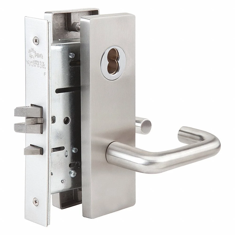 ABILITY ONE 5340-00-NIB-0283 Mortise Lockset, Grade 1, Mr126 Escutcheon, Satin Stainless Steel, Not Keyed