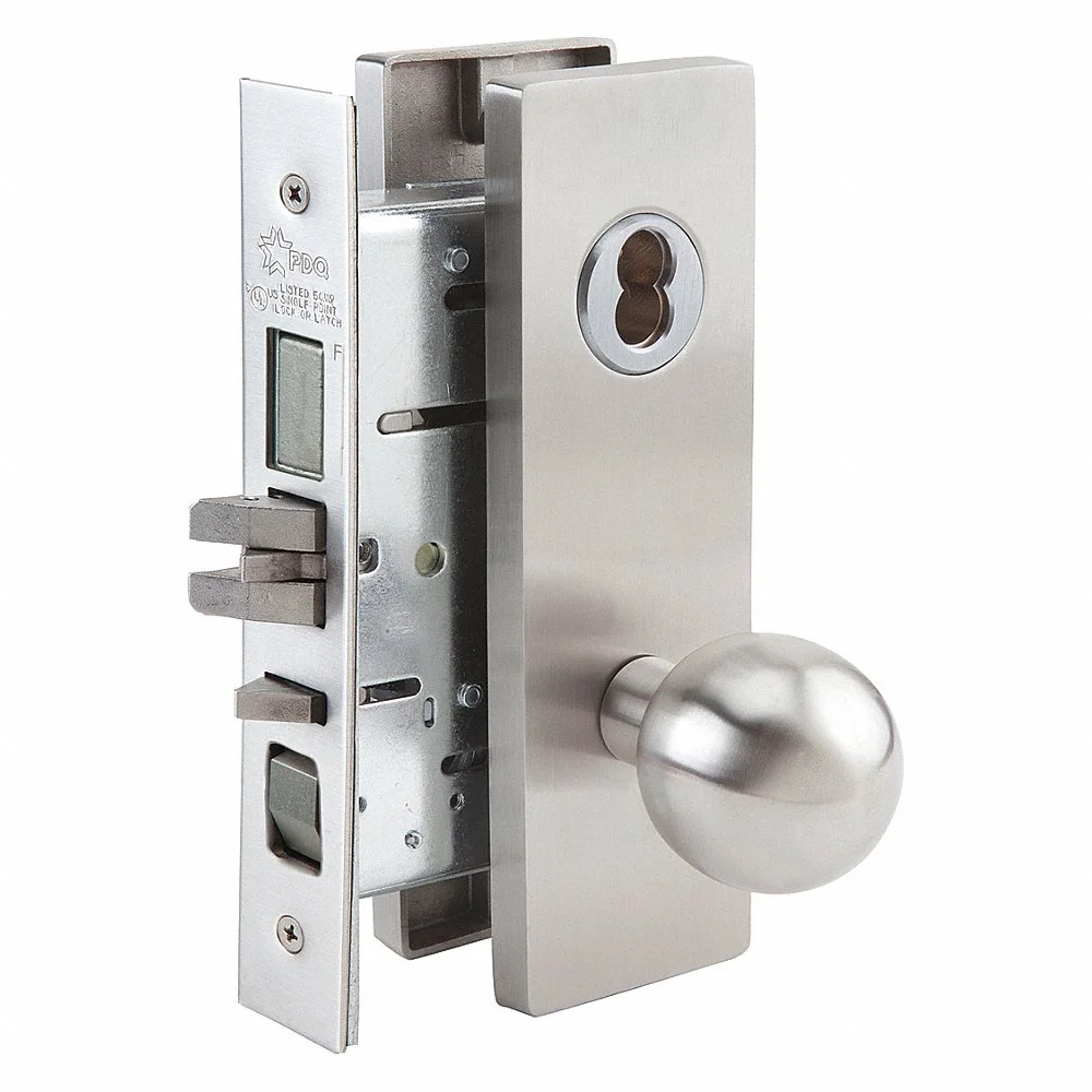 ABILITY ONE 5340-00-NIB-0287 Mortise Lockset, 1, Mr154 Escutcheon, Satin Stainless Steel, Not Keyed