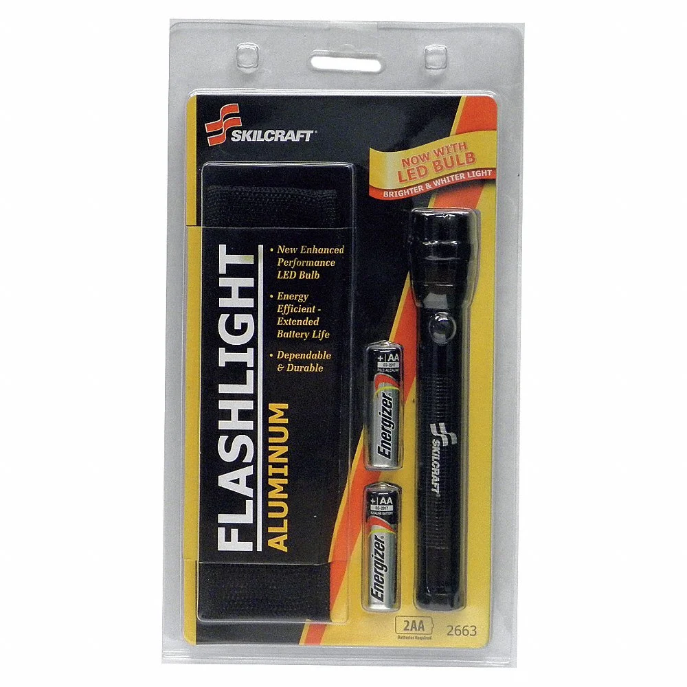 ABILITY ONE 6230-01-513-3305 Flashlight, 60 lm Max Brightness, 1.5 hr Run Time at Max Brightness, Silver, 2 Batteries