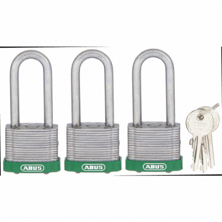 ABUS 19342 Keyed Padlock, Keyed Alike, Steel, Std Body Size, Hardened Steel, Extended, Green