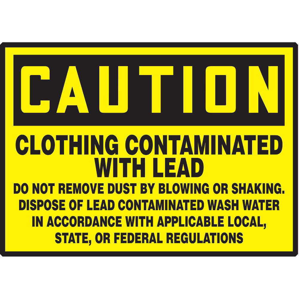 | Sign Legend | Clothing Contaminated With Lead Do Not Remove Dust By Blowing Or Shaking Dispose Of Lead Contaminated Wash Water In Accordance With Applicable Local, State Or Federal Regulations |