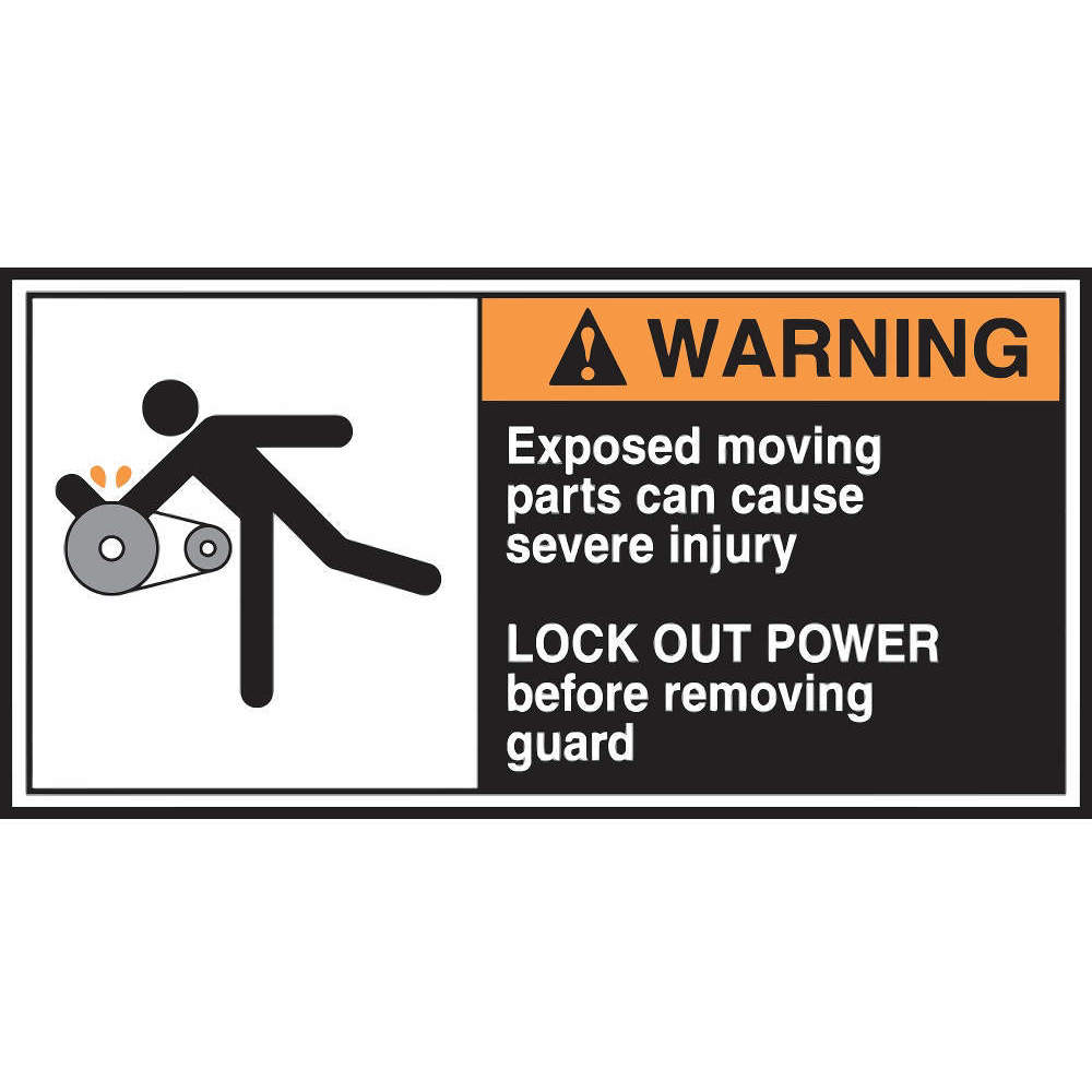 | Sign Legend | Exposed Moving Parts Can Cause Severe Injury Lock Out Power Before Moving Guard |
