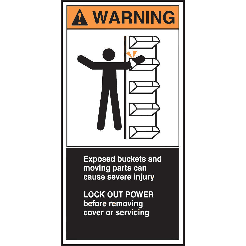 | Sign Legend | Exposed Buckets And Moving Parts Can Cause Severe Injury Lock Out Power Before Removing Cover Or Servicing |