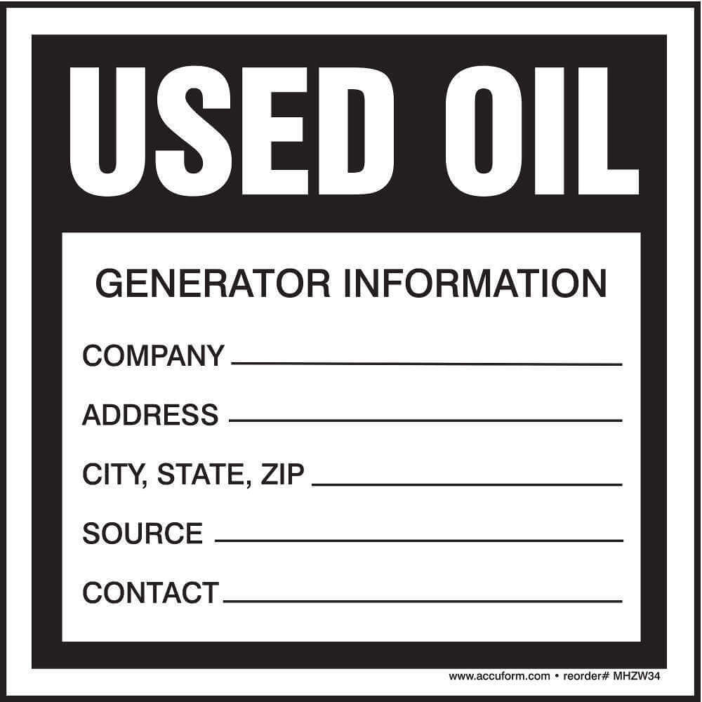 | Message | Used Oil, Generator Information |