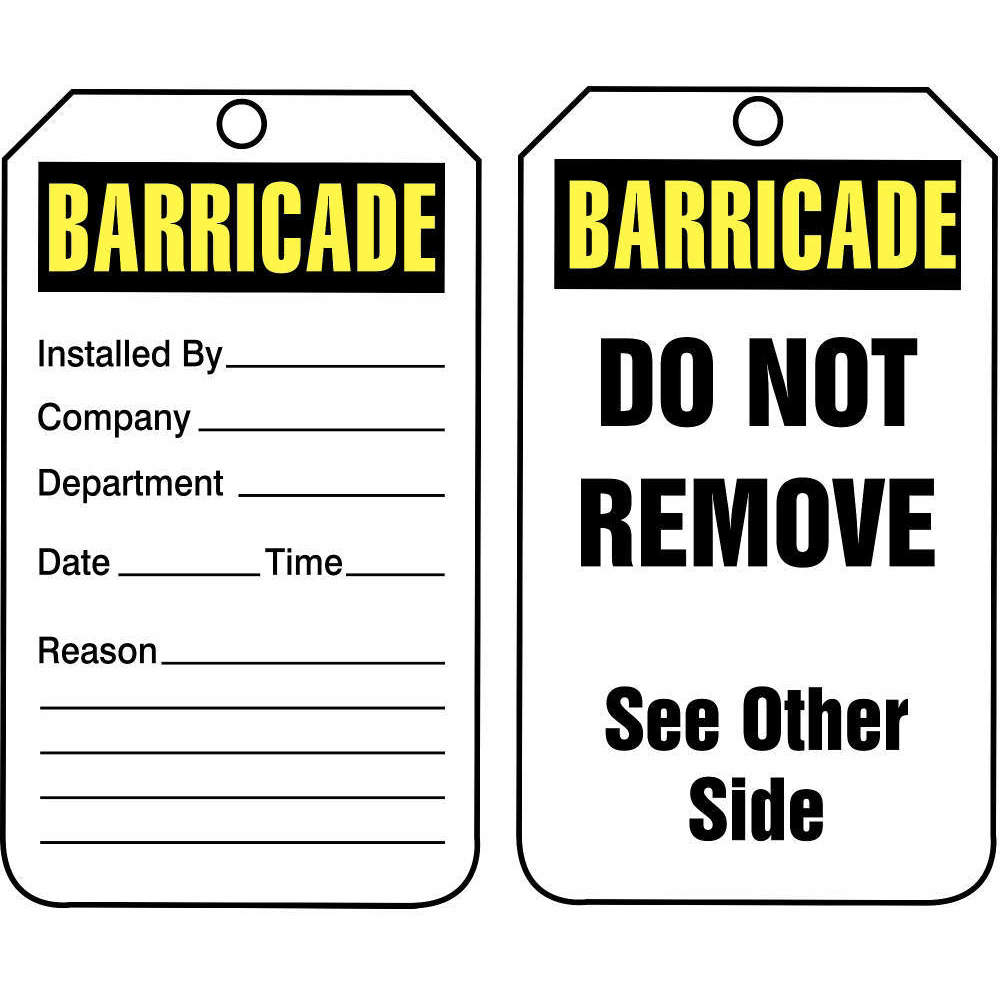 | Safety Tag Legend - Back Side | Barricade Installed By, Company, Department, Date, Time, Reason |