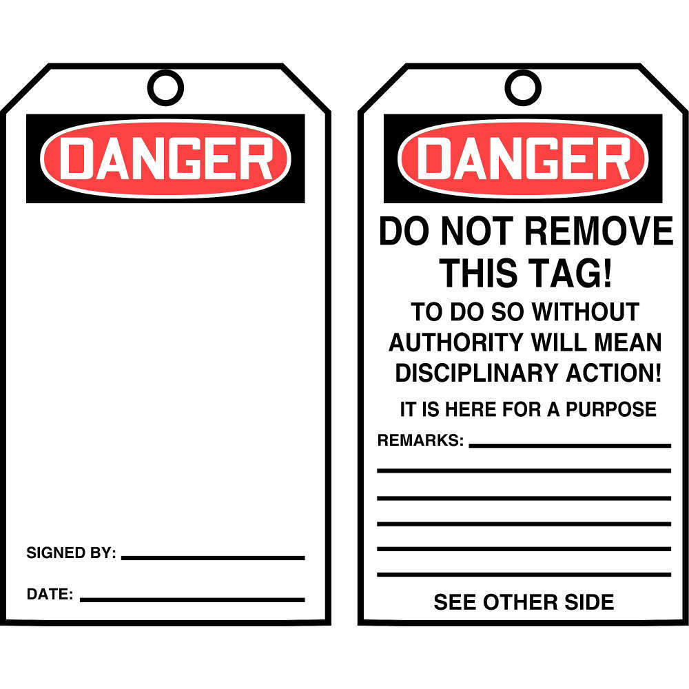 | Safety Tag Legend - Back Side | Do Not Remove This Tag! |