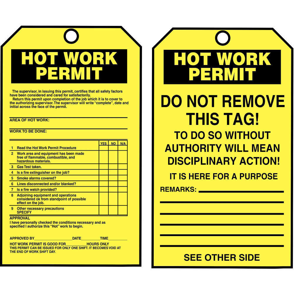 | Safety Tag Legend - Back Side | Hot Work Permit Do Not Remove This Tag |