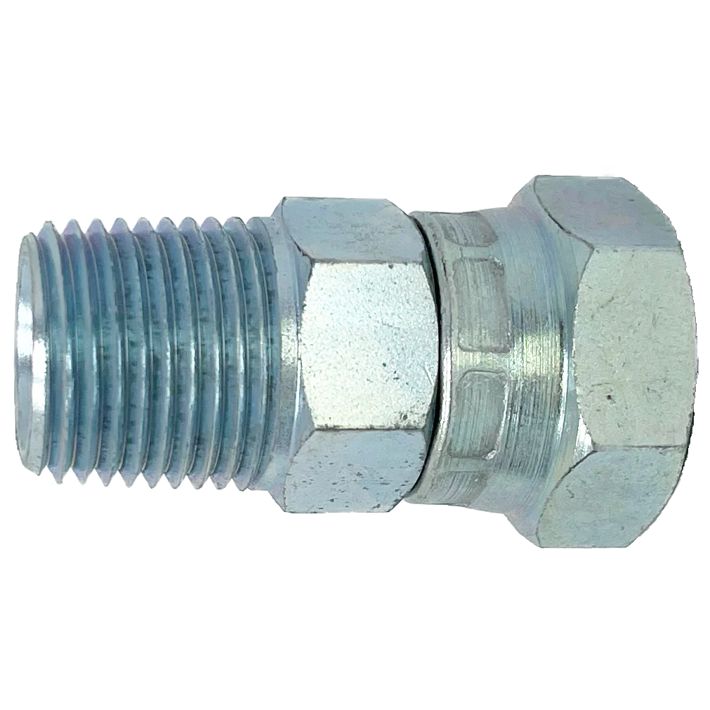 ADAPT-ALL 9023-06-04 Straight Swivel Adapter, Steel, 3/8-18 Male NPT x 1/4-19 Female BSPP 60 deg. Flare