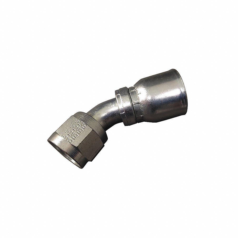 AEROQUIP FJ3243-0404S Elbow, 45 Deg., JIC x Crimp, -4 Hose Dash Size, Steel