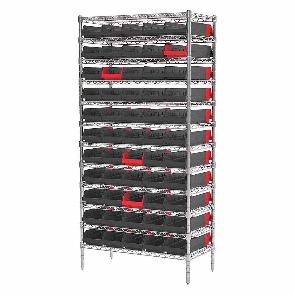 AKRO-MILS AWS183636468BK Bin Shelving, 36 x 18 x 74 Inch Size, 60 Bins, Open, Indicator Bin, Black/Red