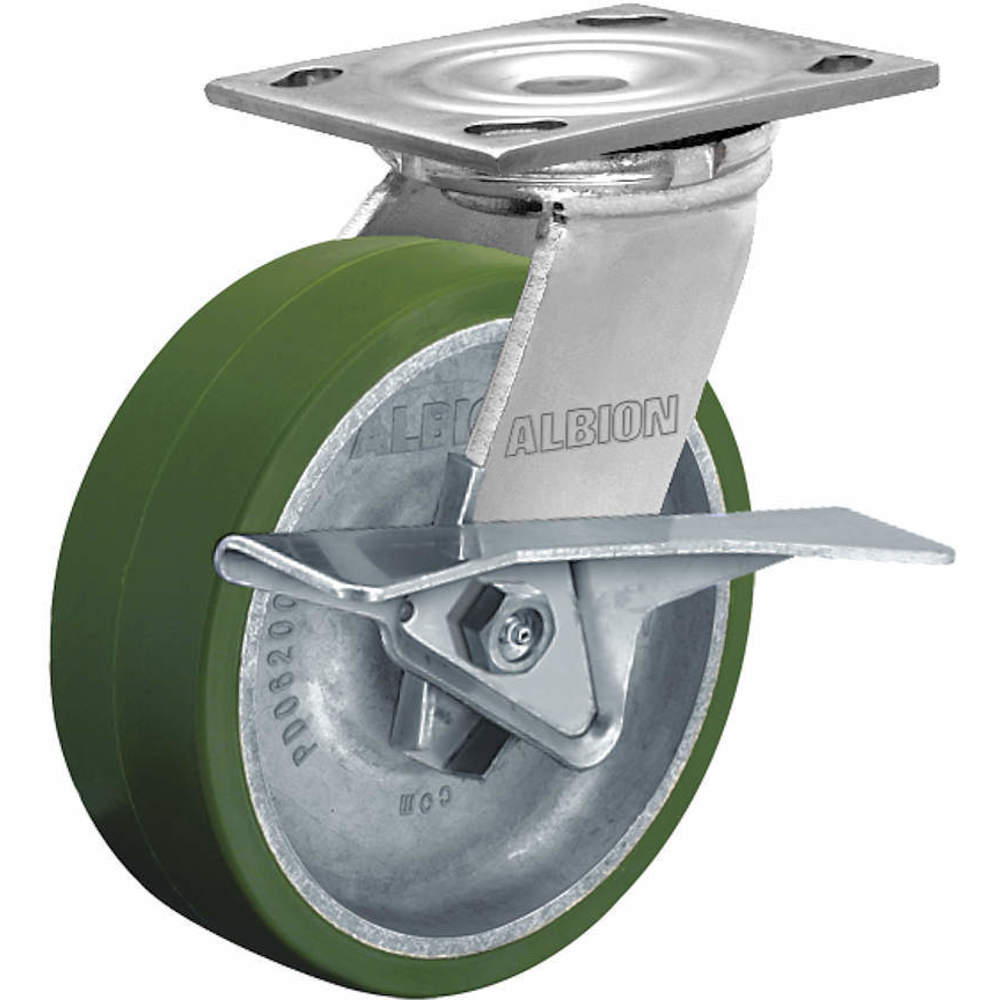 ALBION CASTERS 16PD06201SW104 Plate Caster, Swivel, No Brake, Polyurethane, 6 Inch Dia, 2 Inch Wd, Slot, Rectangle