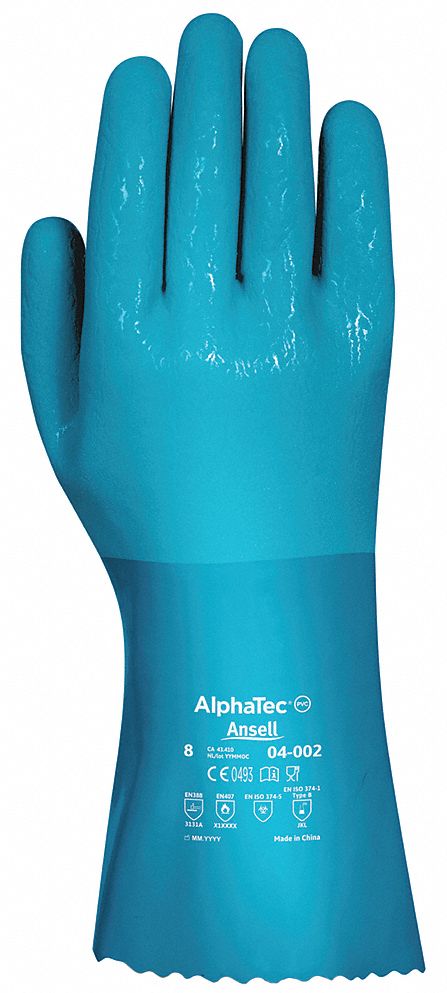 ANSELL 04-002 Chemical Resistant Gloves, 8 Size, Pvc