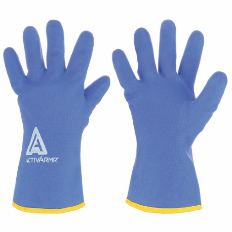 ANSELL 97-681 Coated Glove, PVC Coating, Gauntlet Cuff, M Glove Size, Yellow/Blue, Nylon Lining