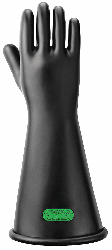 ANSELL CLASS 3 B 16 Electrical Insulating Gloves, Voltage Class 3, Black, 26500VAC /39750VDC
