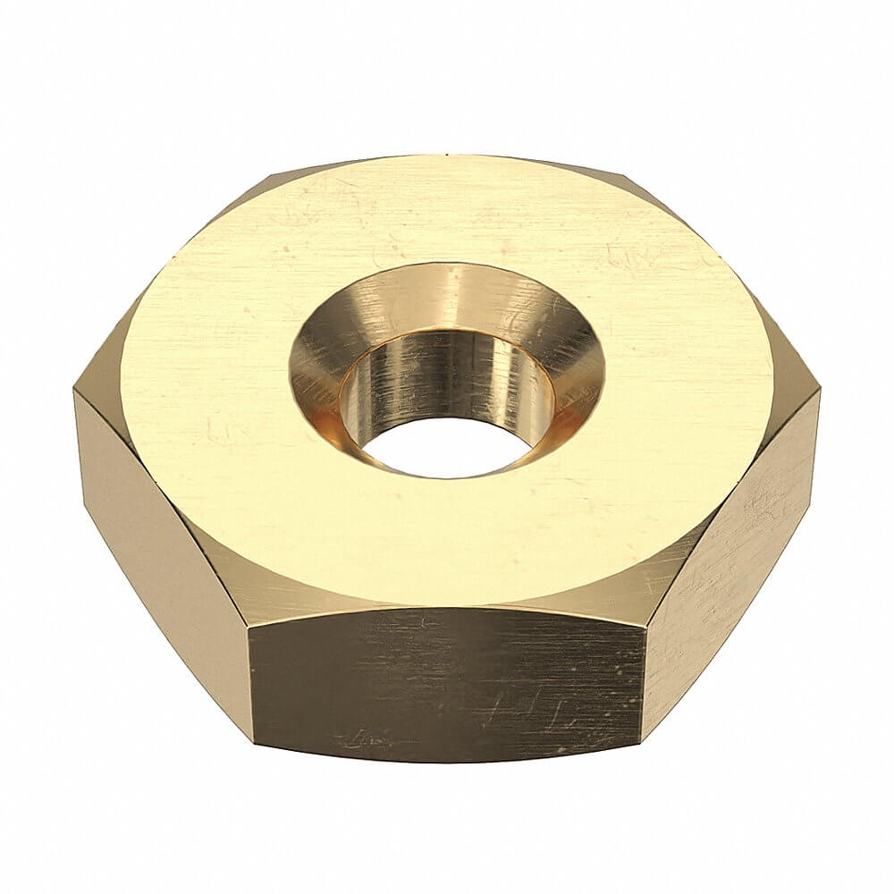 APPROVED VENDOR 25RM6-32 Hex Nut, 6-32 Thread Size, Brass, 7/64 In Ht., 5/16 In Wd., Plain, Std Hex