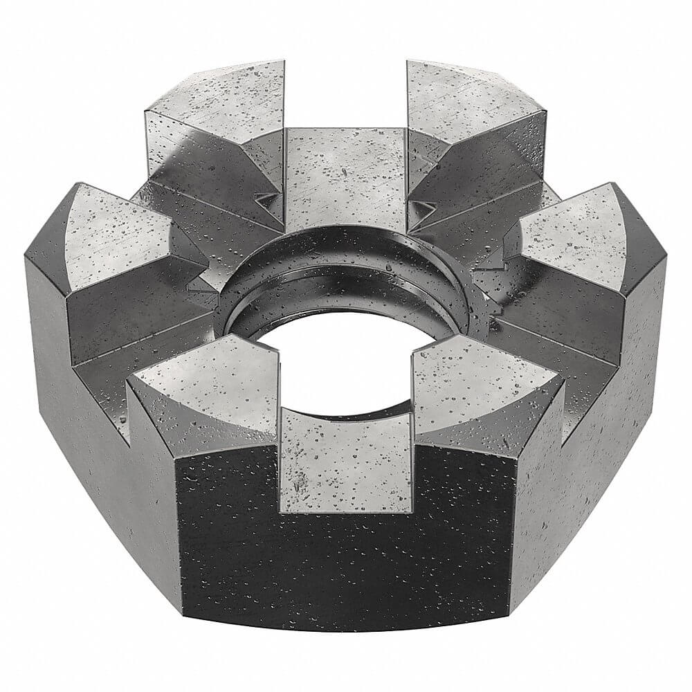 APPROVED VENDOR 351015G Hex Locknut, 1/4 In - 20 Thread Size, Slotted Castle, 7/16 In Hex Wd., Std Hex, Gr. 5
