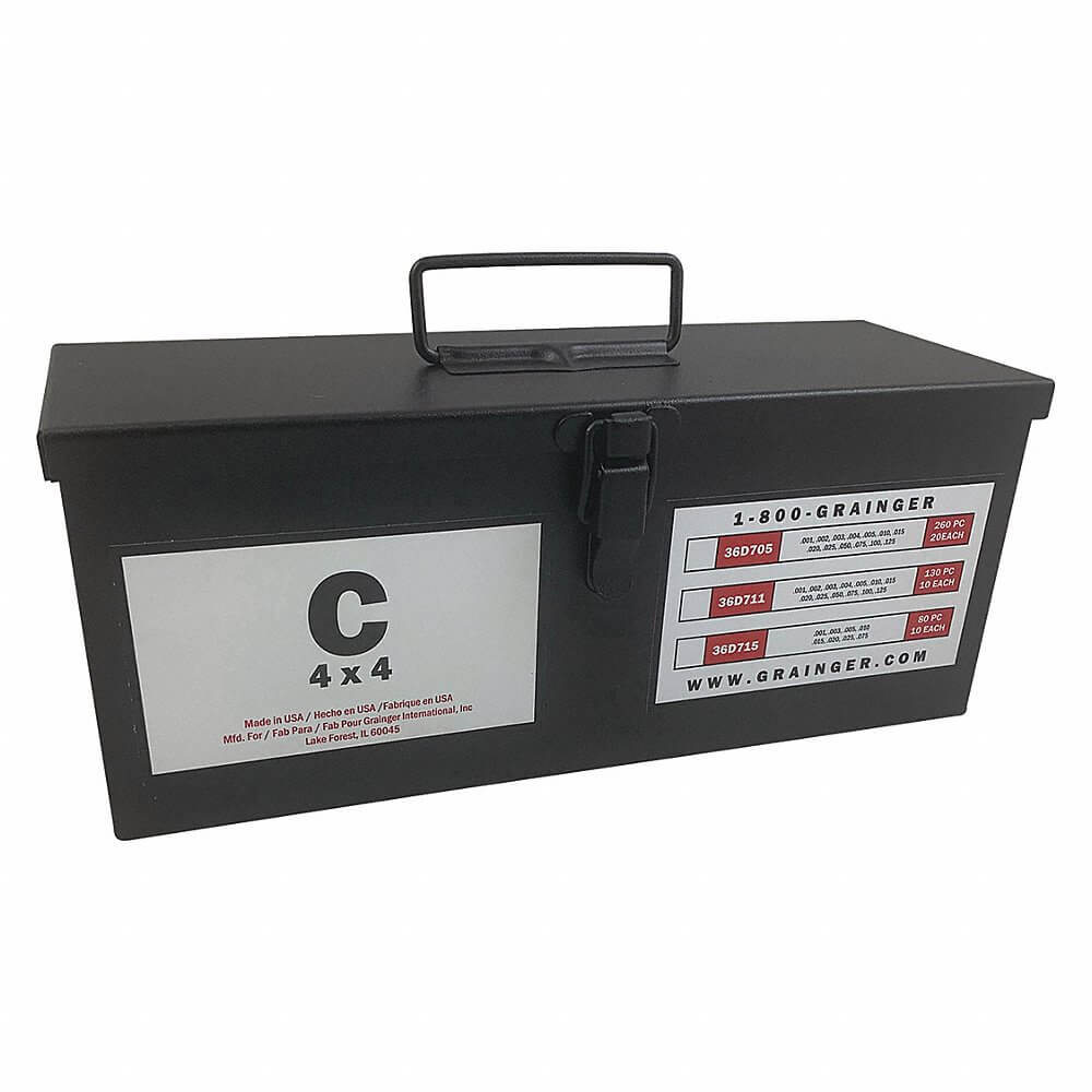 | Includes | (10) 0.001" Thickness, (10) 0.002" Thickness, (10) 0.003" Thickness, (10) 0.004" Thickness, (10) 0.005" Thickness, (10) 0.010" Thickness, (10) 0.015" Thickness, (10) 0.020" Thickness, (10) 0.025" Thickness, (10) 0.050" Thickness, (10) 0.075" Thickness, (10) 0.100" Thickness, (10) 0.125" Thickness |