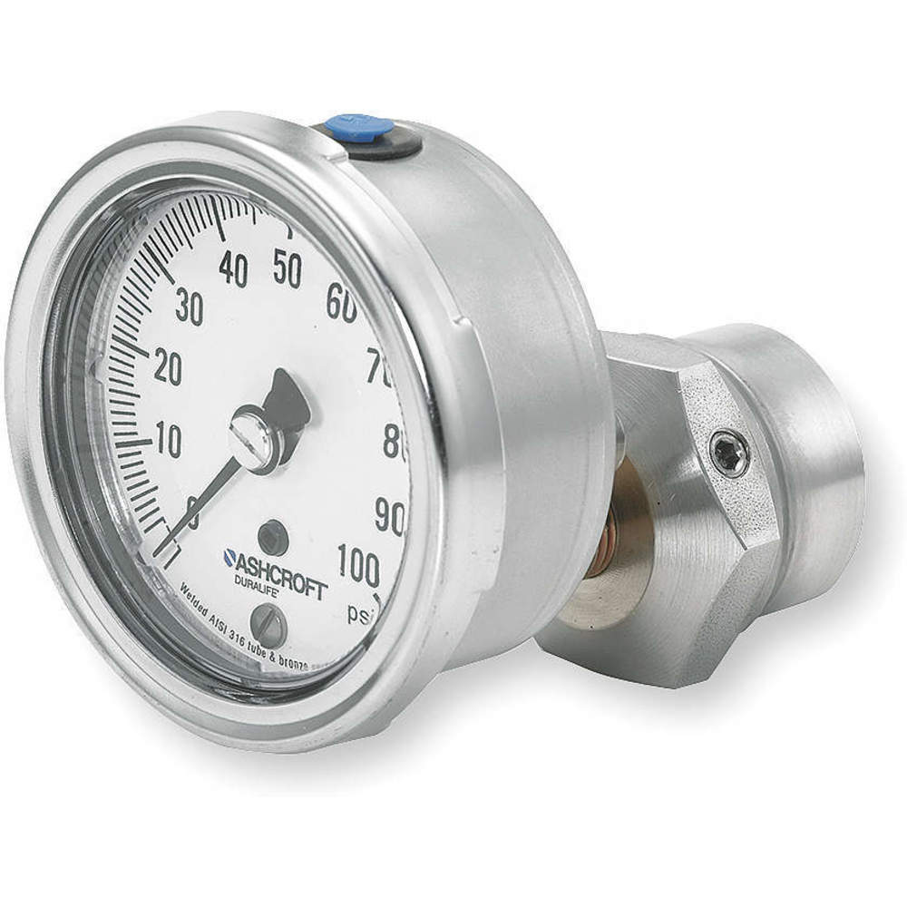 ASHCROFT 251009AW02B100#/25310SS02TXCG Pressure Gauge with Diaphragm Seal, 0 to 100 PSI, 1009/310-315, 2 1/2 Inch Dial, Glycerine