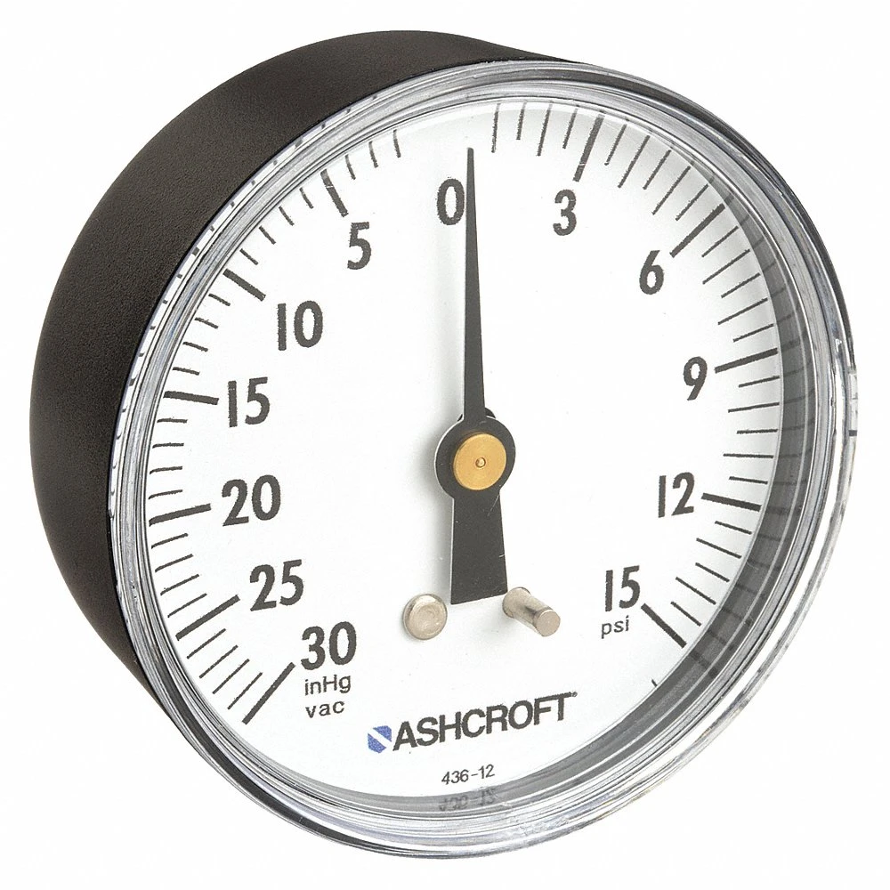 ASHCROFT 25W1005PH02BV/15# Industrial Compound Gauge, 30 in Hg to 0 PSI/Hg to 15 PSI, 2 1/2 in Dial, 1/4 in NPT Male