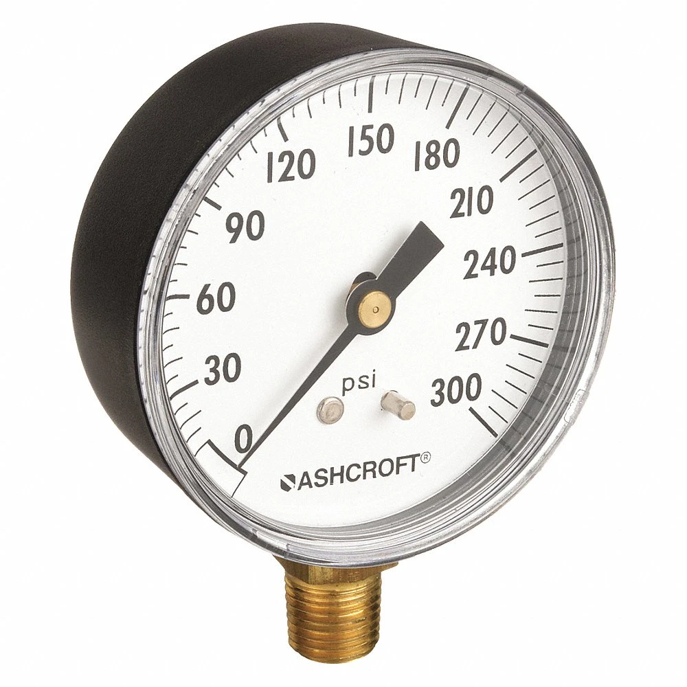 ASHCROFT 25W1005PH02L300# Industrial Pressure Gauge, Gen-Purpose Case, 0 to 300 PSI, 2 1/2 in Dial, 1/4 in NPT Male