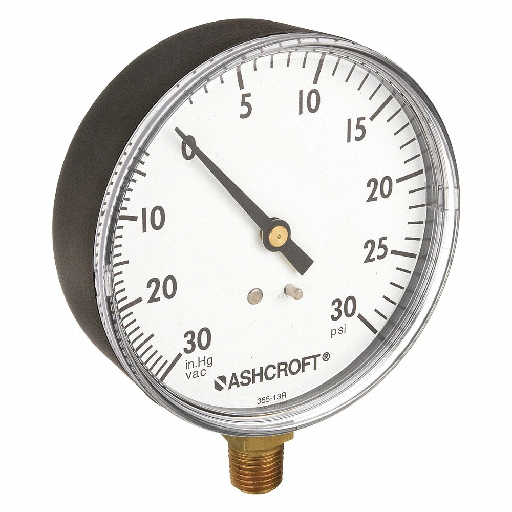 ASHCROFT 25W1005PH02LV/30# Industrial Compound Gauge, General Purpose, 30 - 0 - 30 in Hg/PSI, 2 1/2 in Dial, Bottom
