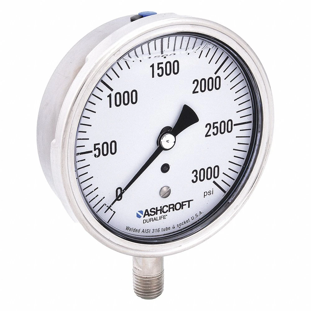ASHCROFT 351009SWL02L3000# Industrial Pressure Gauge, 0 PSI / Hg to 3000 PSI, 3 1/2 in Dial, 1/4 in NPT Male, Bottom