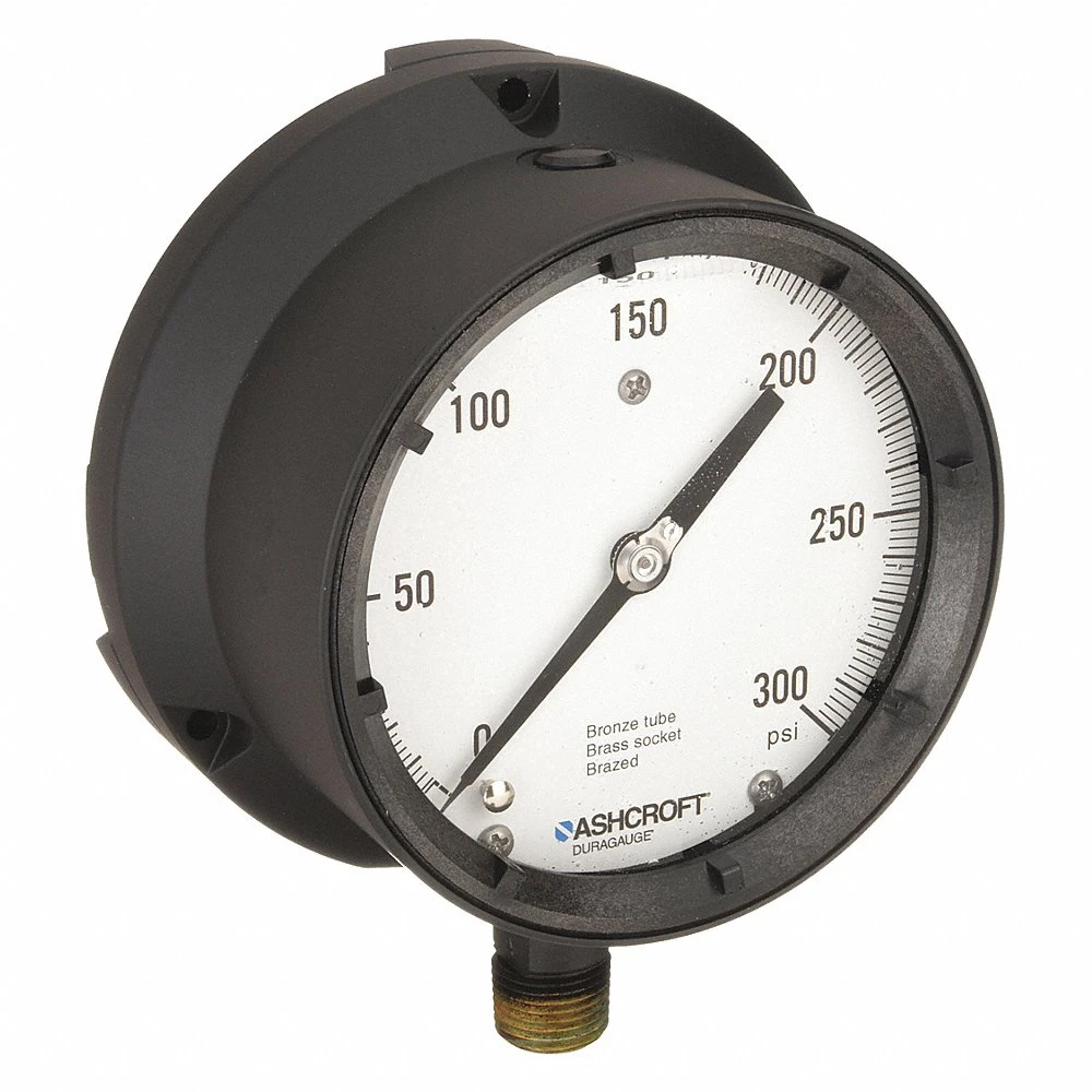 ASHCROFT 451379ASL04L300# Process Pressure Gauge, 0 to 300 PSI, White, 4 1/2 in Dial, 1/2 in NPT Male, Aluminium