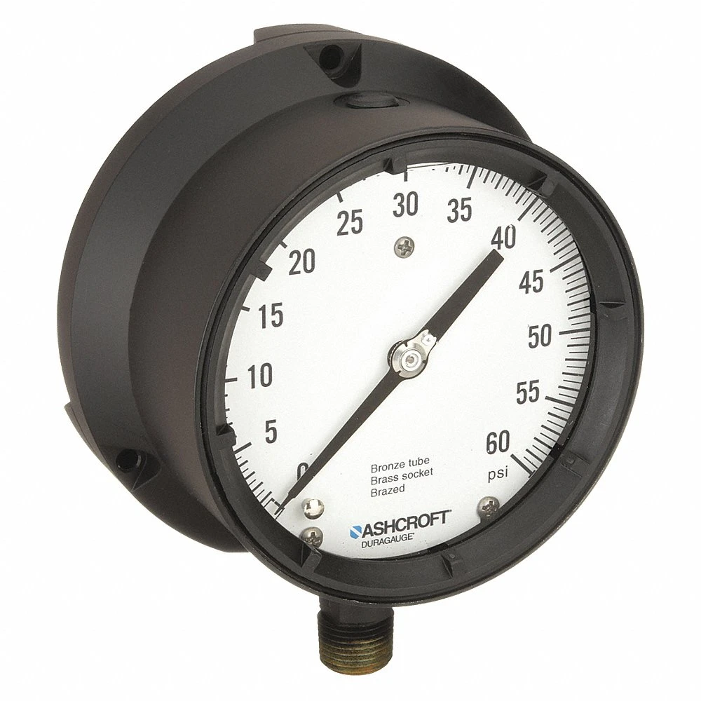 ASHCROFT 451379ASL04L60# Process Pressure Gauge, 0 to 60 PSI, White, 4 1/2 in Dial, 1/2 in NPT Male, Aluminium