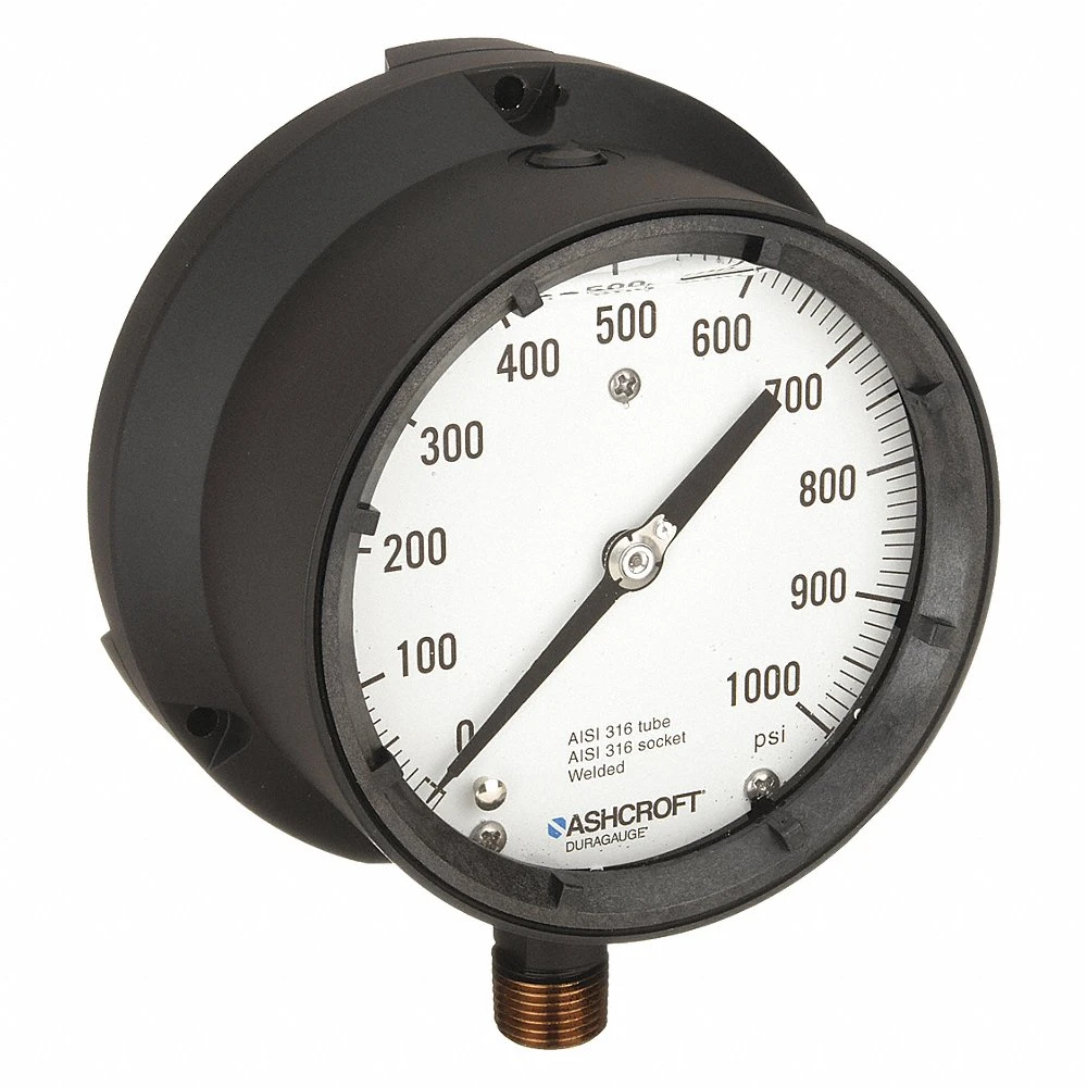 ASHCROFT 451379SSL04L1000# Process Pressure Gauge, 0 to 1000 PSI, White, 4 1/2 in Dial, 1/2 in NPT Male, Aluminium