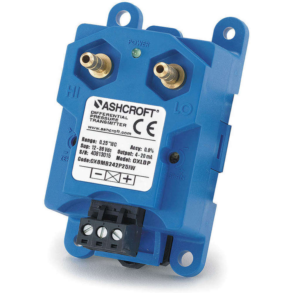 ASHCROFT CX8MB2425IWL Differential Transmitter, DIN Rail, -5 to 5 Inch wc, 4 to 20mA DC, Terminal Block