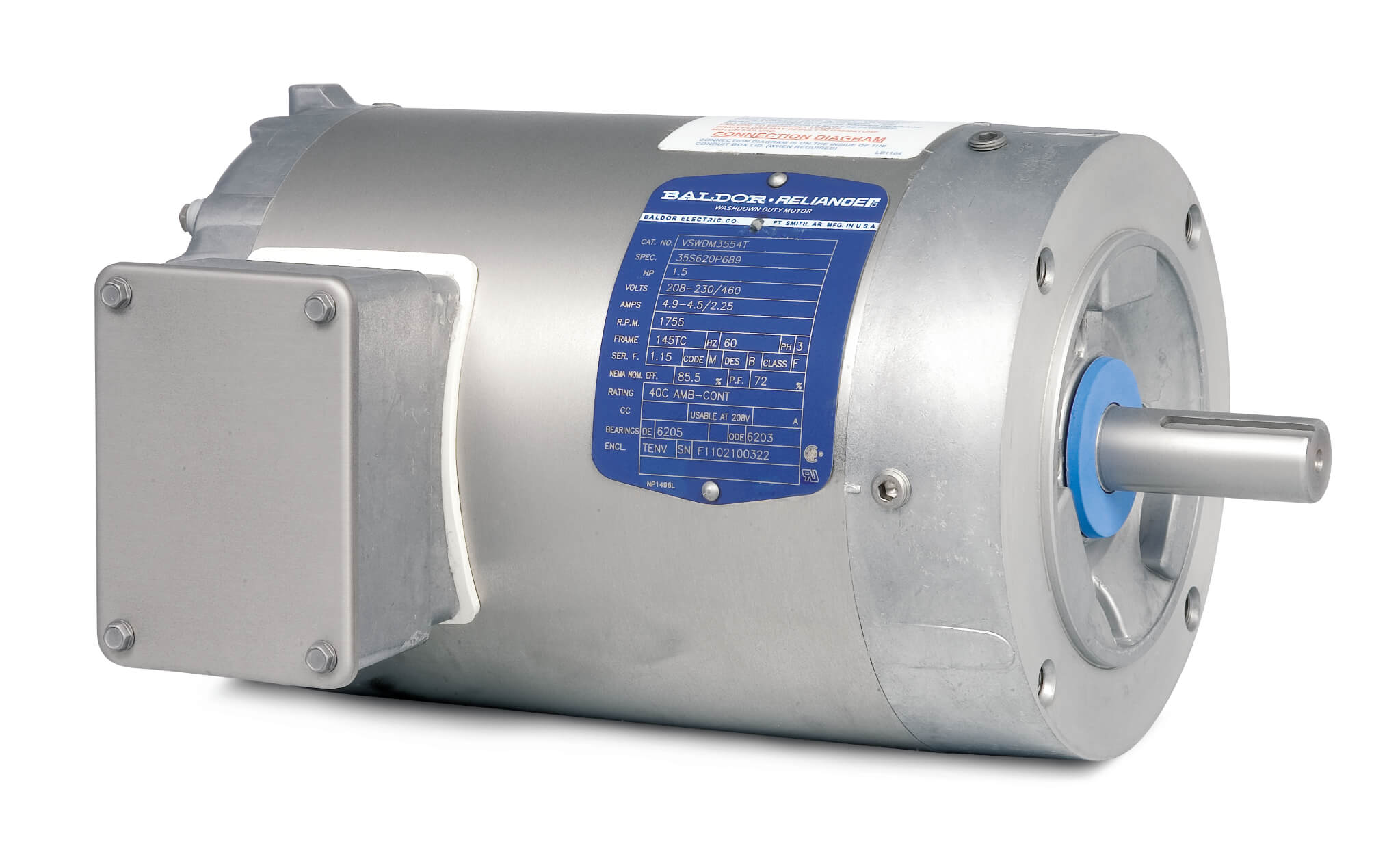 BALDOR MOTOR VSWDM3538 Paint Free Motor, 230/460V, 1800 RPM, 60 Hz, 0.5 hp, 3 Phase, TENV, 56C Frame