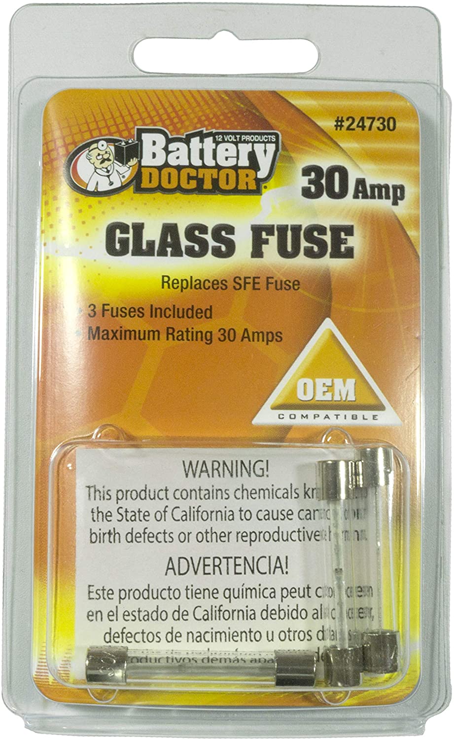 BATTERY DOCTOR 24730 Glass Fuse, 30A, 4 Piece