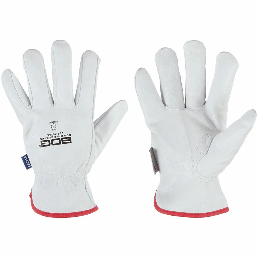 BDG 20-9-1610-M Leather Gloves, Size M, Premium, Drivers Glove, Goatskin, Keystone Thumb, Unlined, White