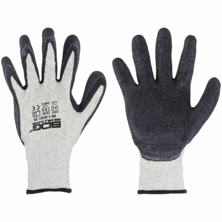 BDG 99-1-9701-10 Knit Gloves, Size XL, ANSI Cut Level A3, Palm, Dipped, Latex, HPPE, Rough, Gray, 1 Pair