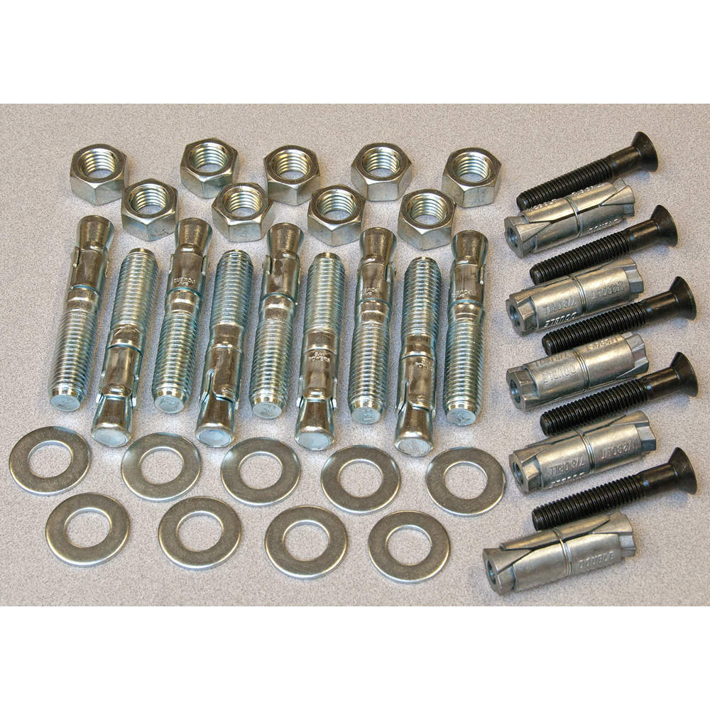 | Includes | (5) 1/2" Double Expansion Shields, (5) 1/2" x 13" x 3" Flat Head Socket Screws, (9) 3/4" x 4" Wedge Anchor Bolts Including The Nuts And Washers |
