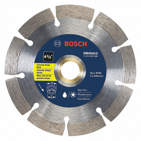 BOSCH DB4541C Diamond Saw Blade, 4 1/2 Inch Blade Dia, 7/8 Inch Arbor Size, Wet/Dry, For Angle Grinders
