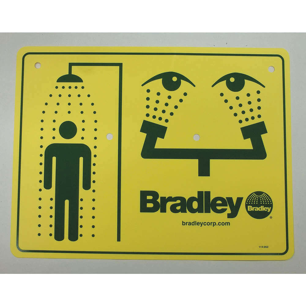BRADLEY 114-052 Safety Sign, Drench Shower And Eyewash, Yellow