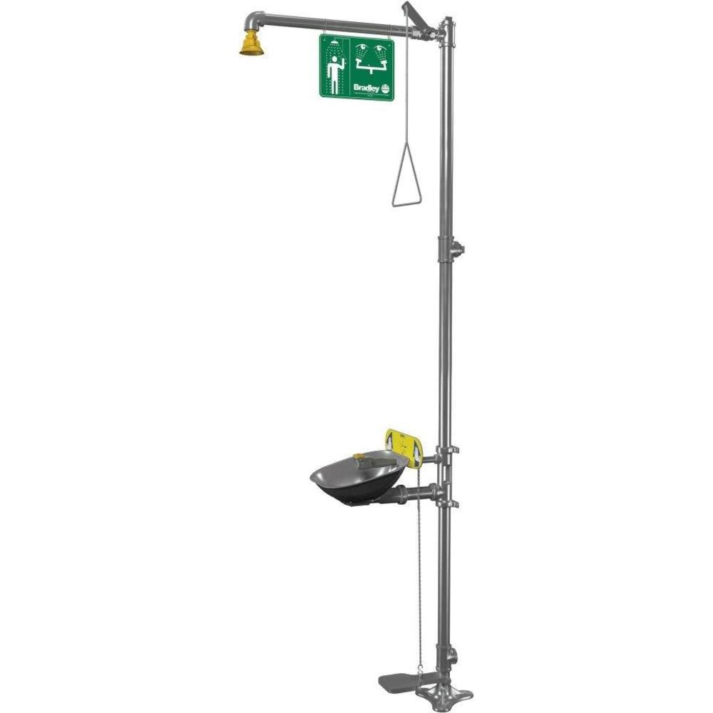 BRADLEY S19314LLZS Halo Eyewash, Plastic Showerhead, Stainless Steel Bowl, Hand & Foot activated