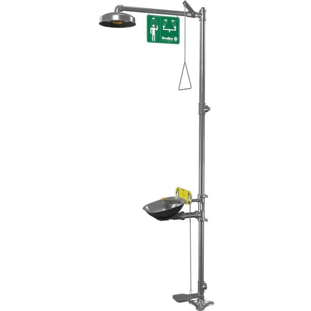BRADLEY S19314UUZS Halo Eyewash, Plastic Showerhead, SS Shroud & Bowl, Hand & Foot Operated eyewash