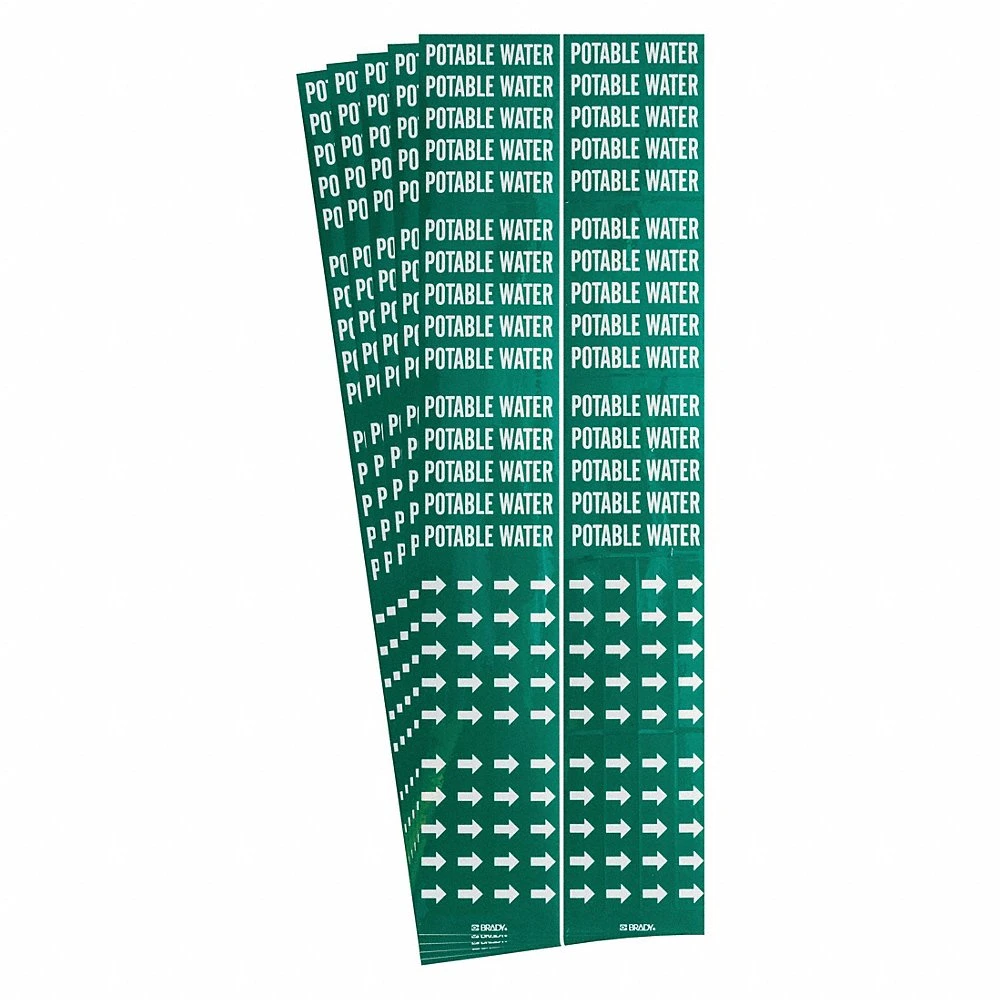 BRADY 106146-PK 172366 Pipe Marker, Potable Water, Green, White, Fits 3/4 Inch and Smaller Pipe OD, 3 Pipe Marker